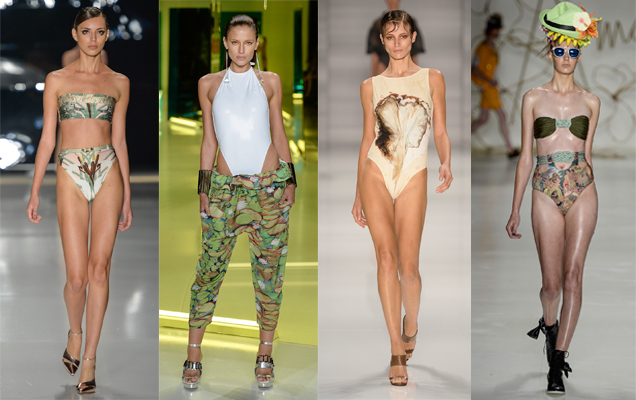 Terminadas as semanas nacionais de moda, é hora de fazer o balanço do que foi visto na passarela. São Paulo Fashion Week e Fashion Rio trouxeram várias novidades para a temporada Verão 2014/15, como as saídas de praia com muita transparência e biquínis e maiôs com uma ousada cava à la anos 1980. Também foi a hora de consolidar algumas tendências que já tinham aparecido discretamente na temporada anterior, como o maiô de manga comprida e as hot pants. Confira a nossa seleção das principais tendências em moda praia.